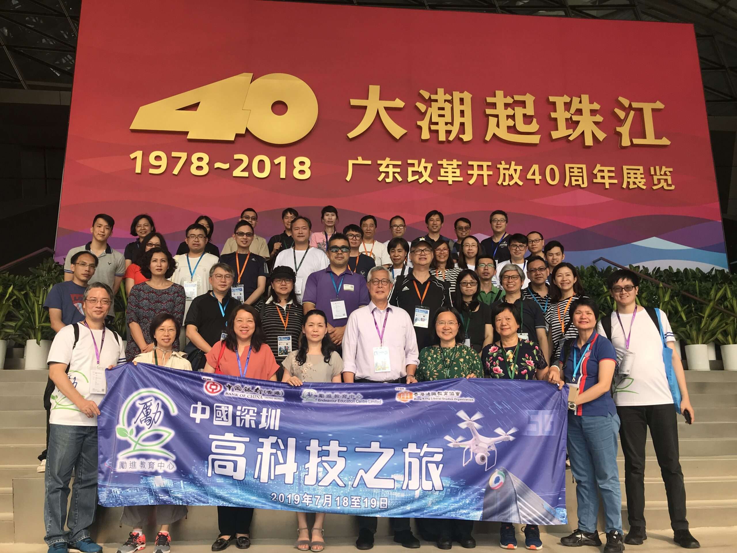 勵進教育中心(下稱「本中心」)在深圳市專家人才聯合會的支持及協助下,於2019年7月18至19日舉辦了為期兩日一夜的「中國深圳高科技之旅」,帶領37位香港現職的教師及校長(原本有40位參加,但其中兩位教師及一位準教師在出發前因事需要退團)前往深圳進行重點式的實地考察,參觀及拜訪騰訊、華為及大疆等內地著名的高新科技公司,認識內地在推動及提供互聯網綜合服務、電子商貿、電訊網絡及設備,以及無人機產業研發及應用等各方面的最新發展情況和未來願景。此外,考察團亦到訪了深港科技創新合作區展示交流中心,了解深港河套合作區的發展歷程及現況。本中心理事李明逵先生亦有隨團參與。