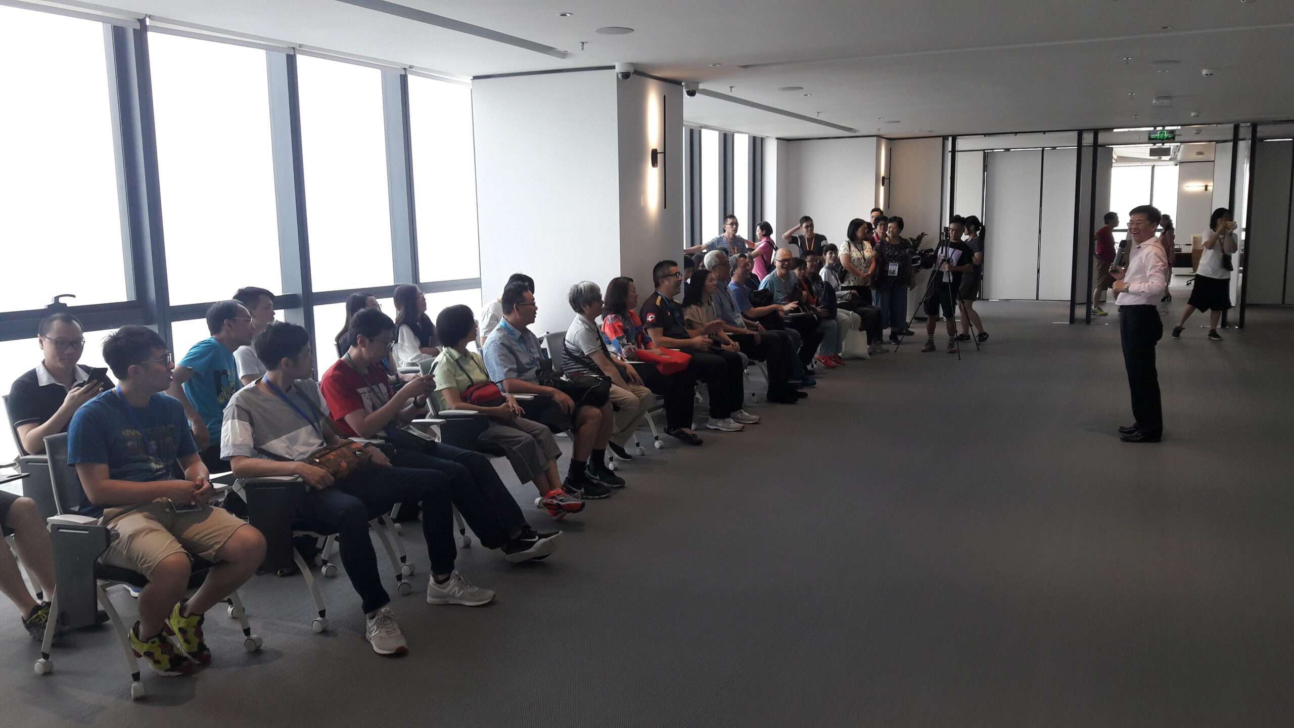 翌日(7月19日)早上,考察團拜訪深港科技創新合作區展示交流中心,由深圳市福田區企業發展服務中心主任馮向陽先生(上圖,中間站立者),向教師們介紹深港河套合作區的發展歷程及現況;教師們並可從展示中心遠眺深圳河兩岸的福田/落馬洲口岸、元朗等地。