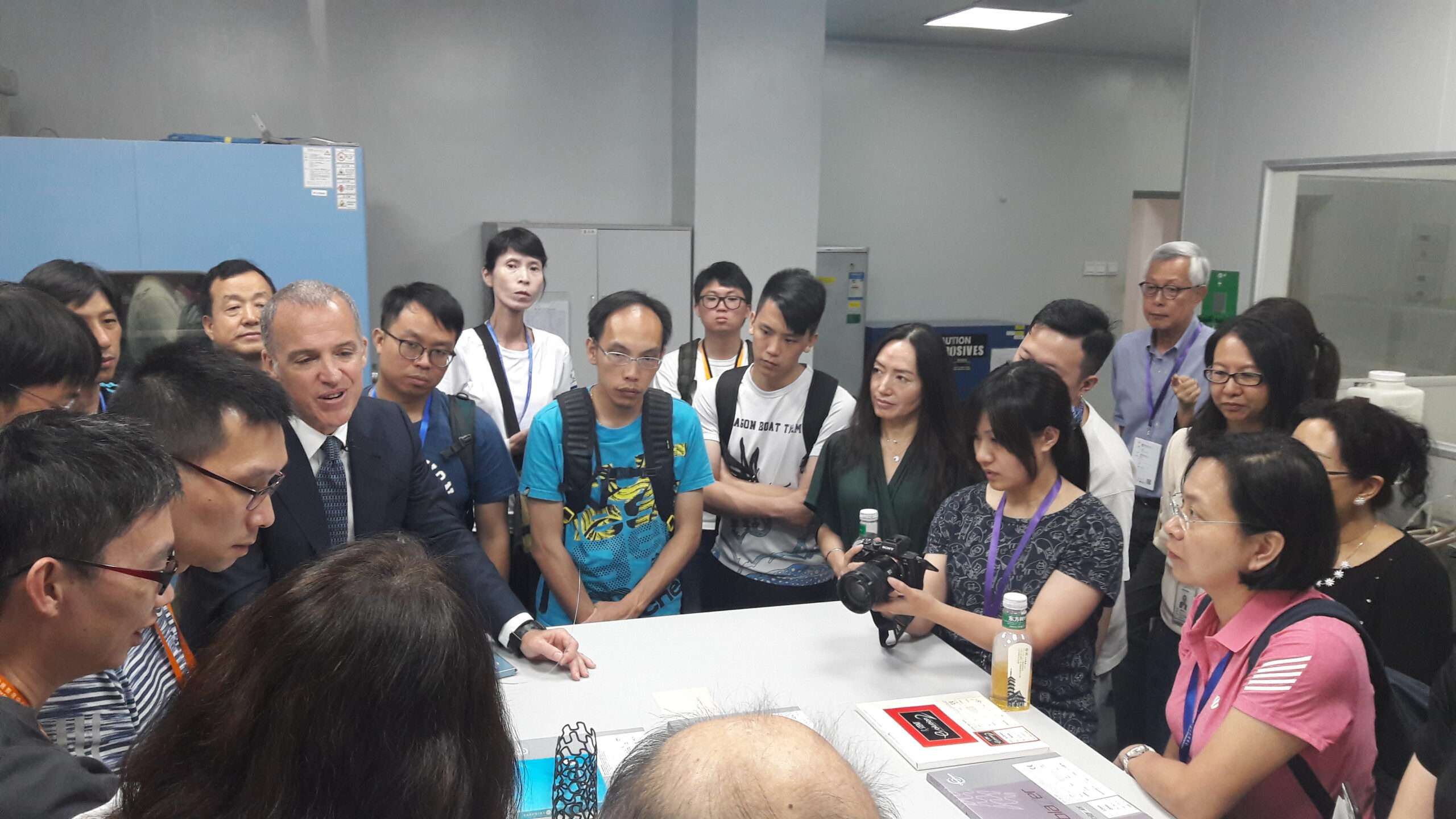 之後,考察團前往一間由香港人創辦、專門生產「通波仔」手術用的冠狀動脈球囊擴張導管的醫療用品科技公司進行參觀,教師們都對該公司所生產並獲得不少香港醫院採用的擴張導管深感興趣。