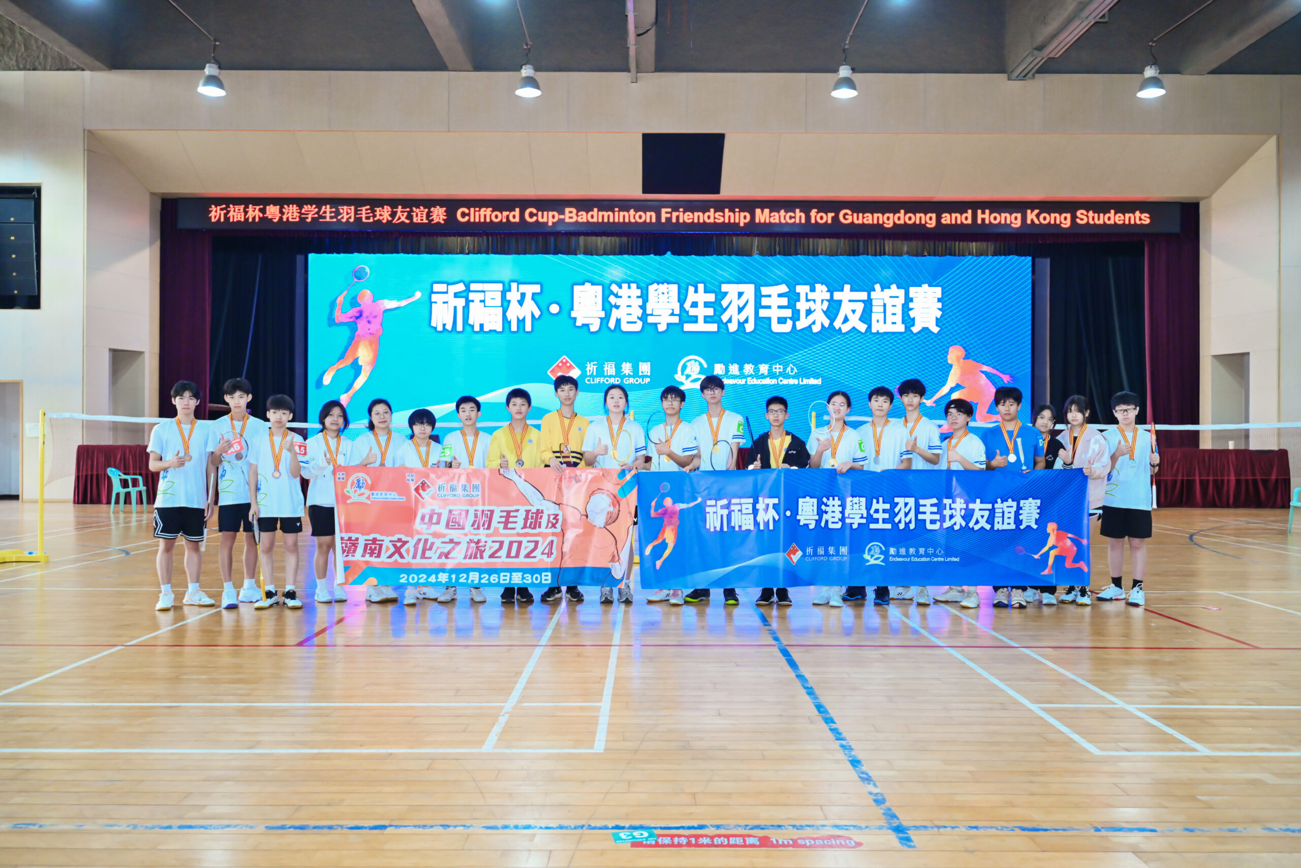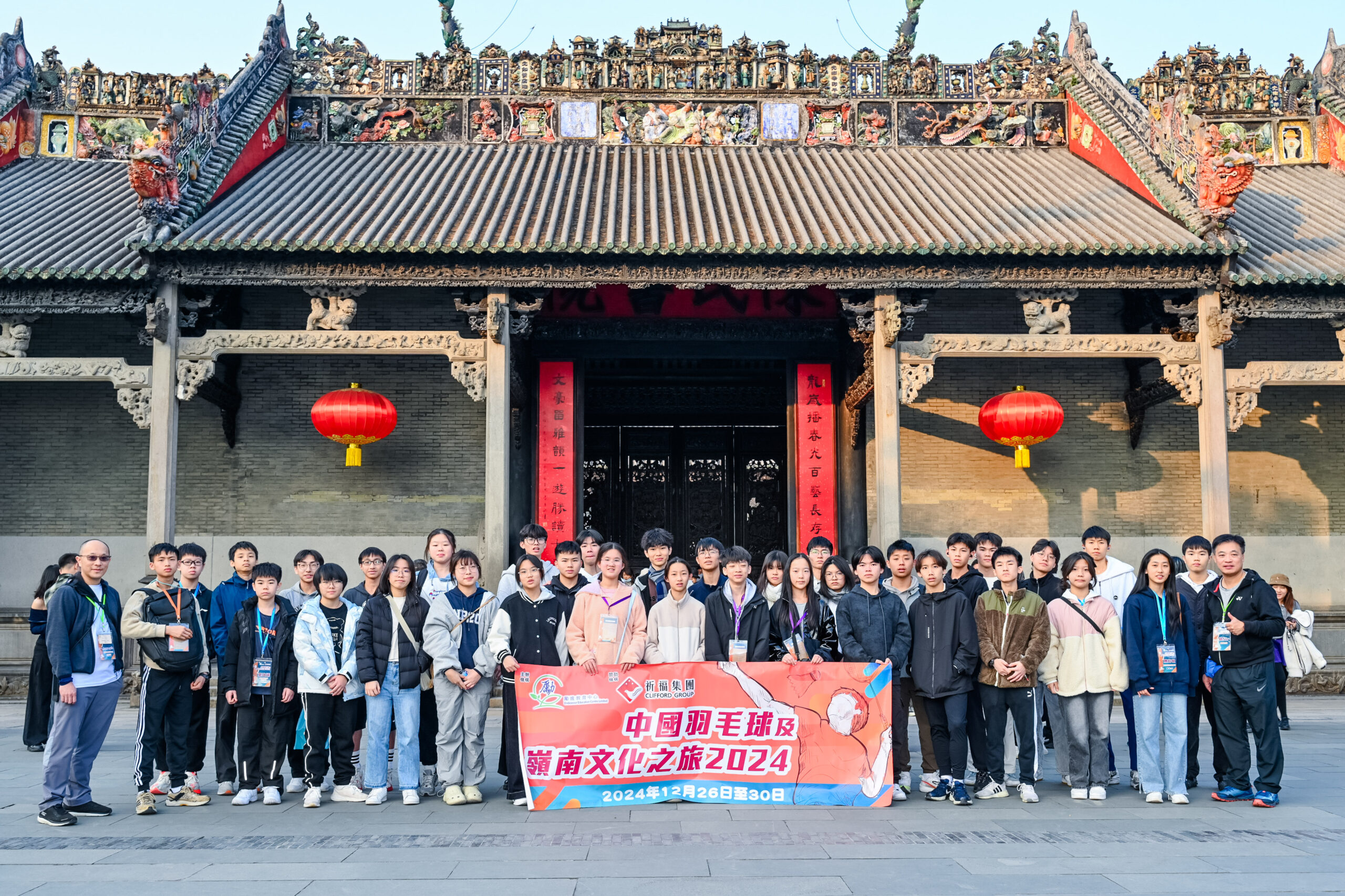 由勵進教育中心主辦、祈福集團支持贊助的「中國羽毛球及嶺南文化之旅2024」已於2024年12月26至30日圓滿結束,一共30多位同學到廣東進行羽毛球集訓,由原國家羽毛球隊隊員周軍女士率領教練團隊,針對性地為同學提供全方位指導,幫助他們提升球技、戰術運用及心理質素等方面。其後,我們也安排了同學們與當地學員及祈福英語實驗學校同學進行友誼賽交流,展開了多場精彩對決。另外,為了讓同學了解嶺南文化,我們更特意安排參觀嶺南印象園、廣東省博物館及陳家祠等著名景點。