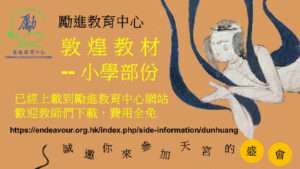為了讓更多學生了解敦煌的歷史及文化,勵進教育中心特別製作了一套「敦煌教材─高小部份」,嘗試從常識、視覺藝術等科目的角度,介紹敦煌文化和歷史,希望有助高小教師更容易向學生教授敦煌文化的知識。這套教材…