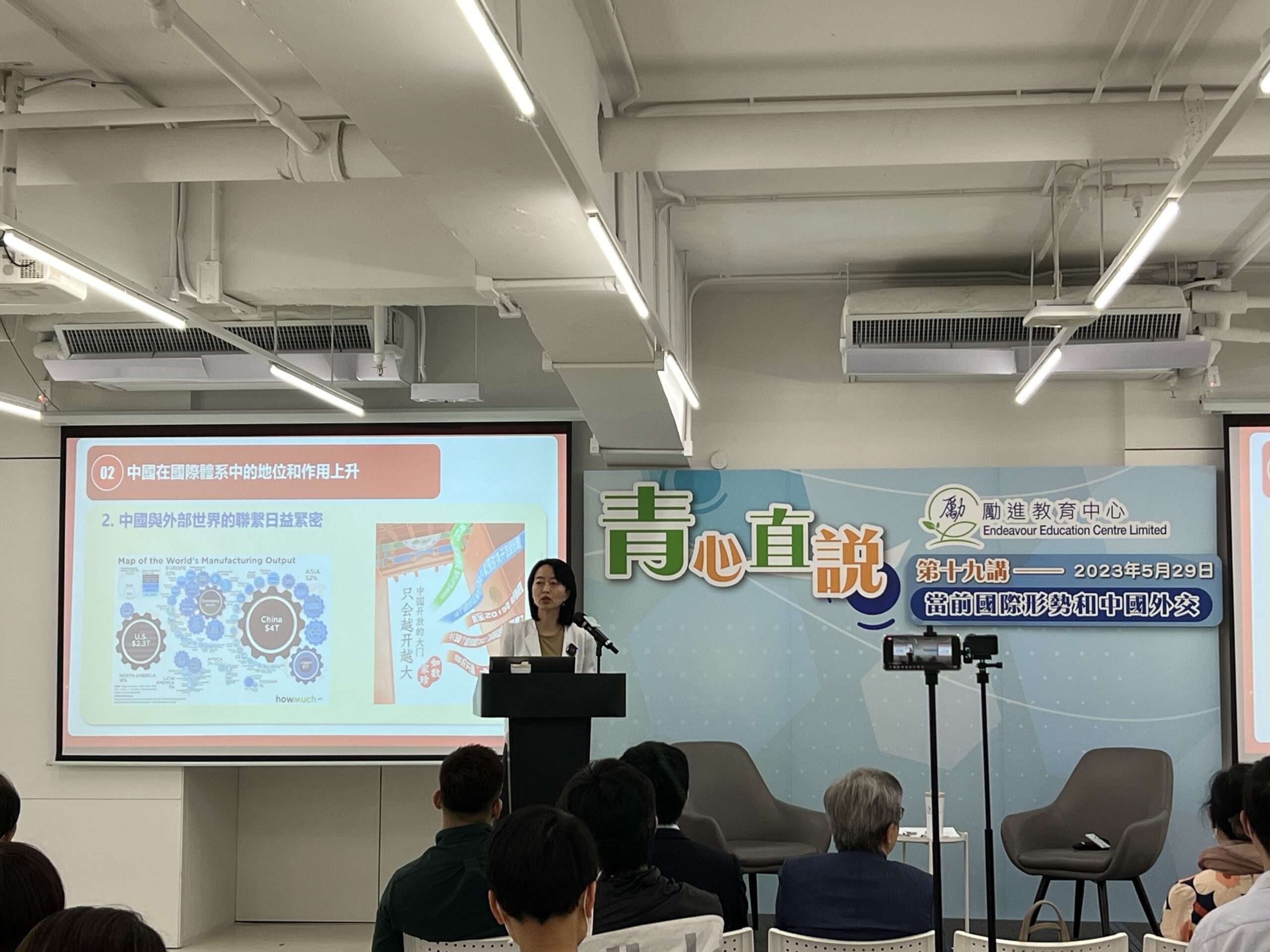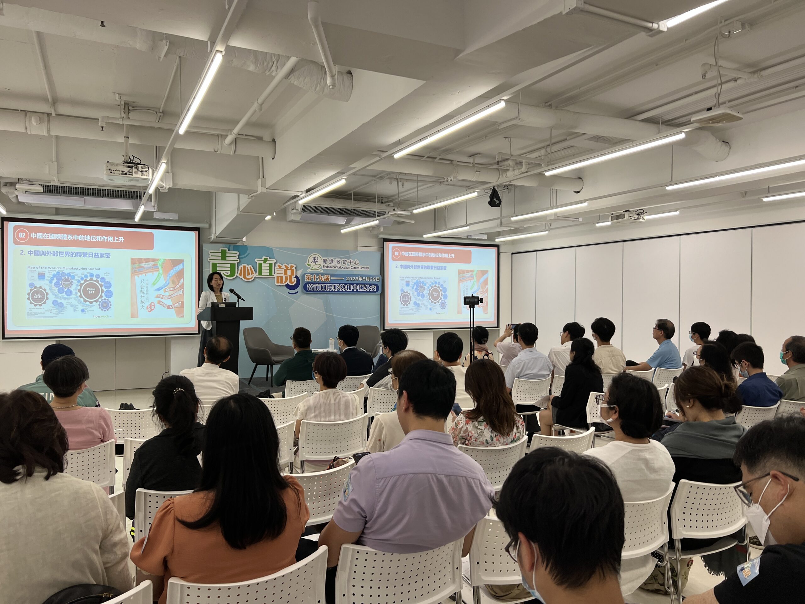 勵進教育中心(下稱「本中心」)邀請全港中、小學的校長、教師、學生及勵進之友等人士參加於2023年5月29日晚上(星期一)舉辦的「青心直說」第十九講 當前國際形勢和中國外交講座,邀請到外交部駐港特派員公署條約法律部主任周倩女士擔任主講嘉賓,以輕鬆對談的形式,與參加者分享現今中國外交進程和香港在國際形勢不穩定中的影響。